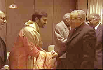 At the (Catholic) altar the Hindu priest, the Shastri, recites the prayer for peace |