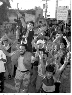 Muslim fundamentalists in Lebanon celebrate after hearing the news of the terrorist attacks on the US - Catholic World Report, November 2001 |