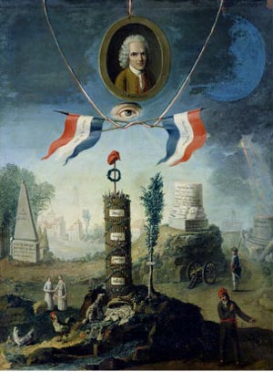 An allegory of the French Revolution showing Rousseau as the prophet of Deism |