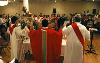 The presider with the 'body of Christ' - the people |