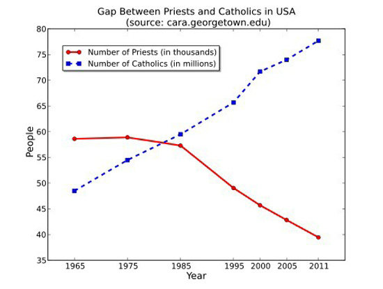 Priests: 1965 = 58,000; 2013 = 38,800