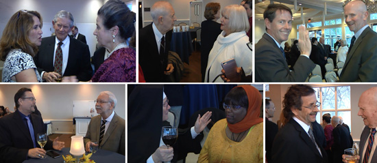 Above top row from the left, photo 1: Mrs. Gigi Kurz, Dr. William Mitchell, Dr. Marian Horvat; photo 2: Prof. Remi Amelunxen, Mrs. Donna Sullivan Emami; photo 3: businessman Jason Rishel with construction engineer William Dettman