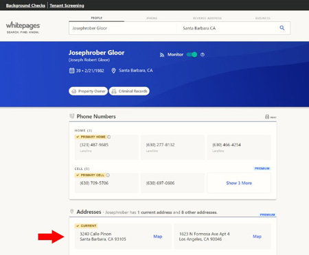 To answer the last objection, we researched the addresses of both Bishop Robert Barron and Mr. Joseph Gloor on White Pages, and the current addresses that appear for both persons are the same, as can be verified in the snapshots below.