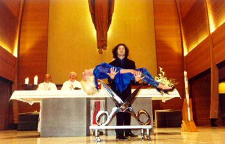 On May 27, 2001, in the city of Colle, North Italy, Archdiocese of Venice, more than 200 different groups of magicians and clowns gathered together in response to the invitation of Fr. Silvio Mantelli. They met at the church and a Mass was the high point of the schedule. During it, magicians and illusionists performed their shows, such as the levitation shown in the photo above.
