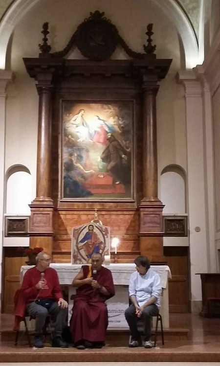 The photo above shows the principal Buddhist monk in front of the altar at the presbytery delivering a talk to Catholics of Ravenna.