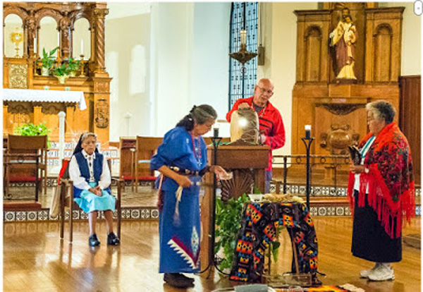On July 15, 2017, the celebrations in honor of Kateri Tekakwitha, who was proclaimed a saint by the Conciliar Church, was used as a pretext for the American Bishops to promote a report on a survey on the application of "inculturation" in the Dioceses around the country.Indeed, as an encouragement to enforce "inculturation" by including Indian symbols in the Catholic Liturgy, this question was asked: "Do the Native people in your archdiocese/diocese use their symbols and rituals in their communal life?"