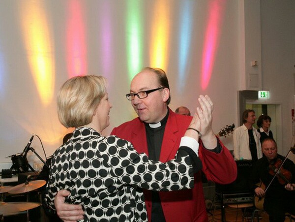 In late September 2017, Pope Francis chose a new Bishop for the important Austrian diocese of Innsbruck. His name is Hermann Glettler.Above, you see Fr. Glettler dancing with Kristina Ploder, Chairman of the Board of Trustees of Caritas, at the Marienstüberlball, a charity event that took place in Graz in January 2017, hosted by the Austrian Caritas. Glettler does not see any problem with being photographed in a red coat as he dances embracing a married woman with rainbow-colored lights in the background.