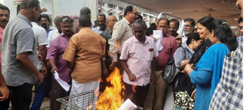 Syro-Malabar Catholics burn the letter of Arch. Vasil outside St. Mary’s Cathedral in Ernakulam