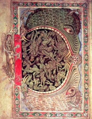 The guide led me all around this horrible place. At regular distances bronze portals like the first overlooked precipitous descents; on each was an inscription, such as: "Depart from me, ye cursed, into everlasting fire, which was prepared for the Devil and his angels." (Mt 25: 41) "Every tree that yielded not good fruit, shall be cut down, and shall be cast into the fire." (Mt 7: 19)
