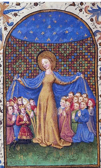 "And so I lay as comfortable as if under a tent or as someone who falls asleep in a green meadow. Happy the soul that under such an exquisite cover is solaced, where neither cold nor heat nor wind nor ice will vex it. The shade of that cloth of the Holy Mother is so soothing that one who is hot finds coolness beneath it and one who is cold finds tempered warmth. What magnificent help in times of anguish!"