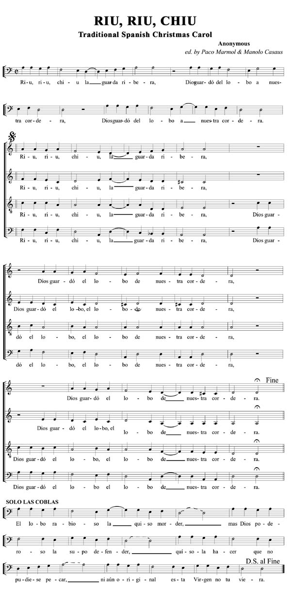 This traditional Spanish Christmas carol in honor of the Blessed Virgin Mary is of the type known as a 'villancico', dating from the 16th century. The song is a lesson in Catholic doctrine on the Immaculate Conception of Our Lady as well as the birth of Our Lord who came to redeem the world from the guilt of sin.